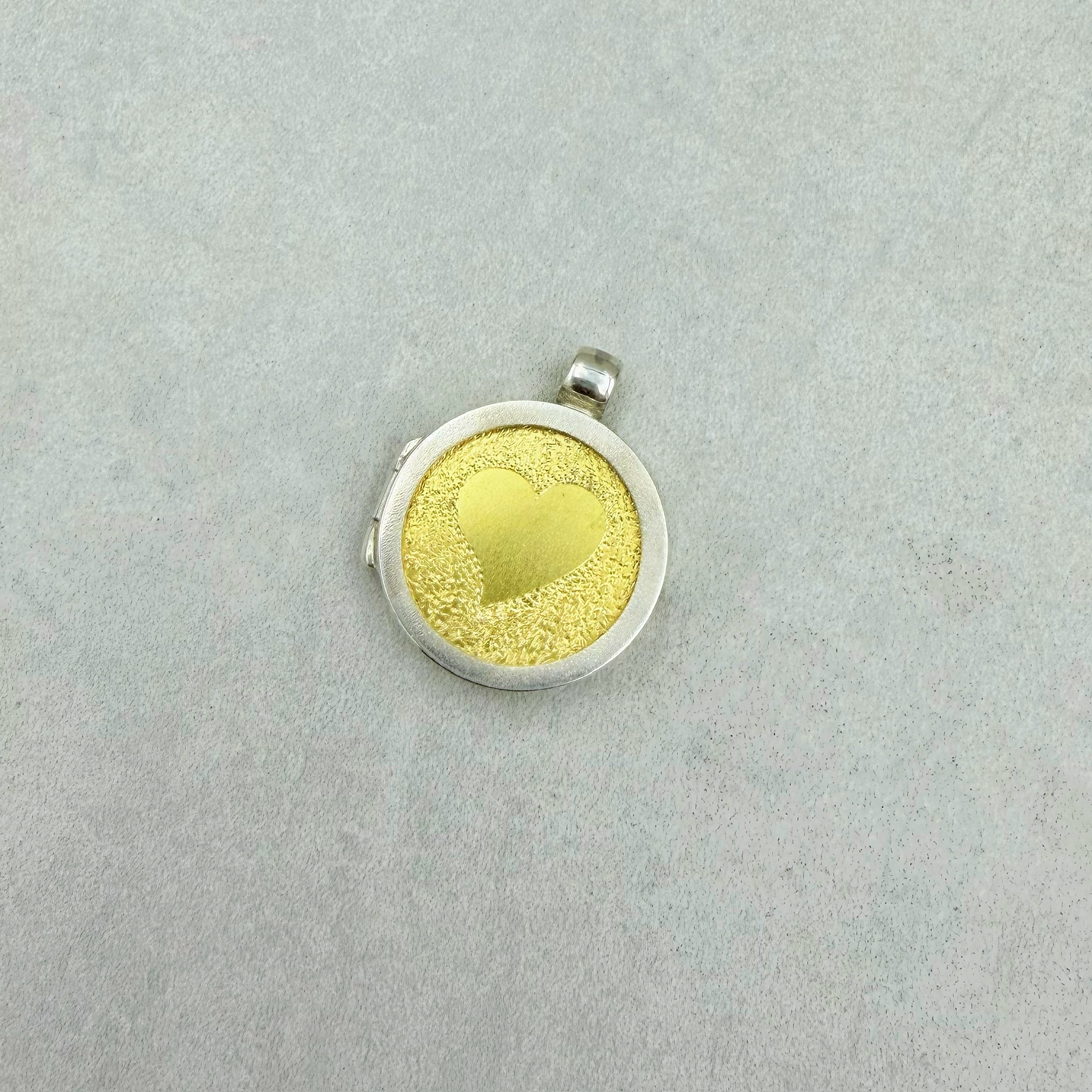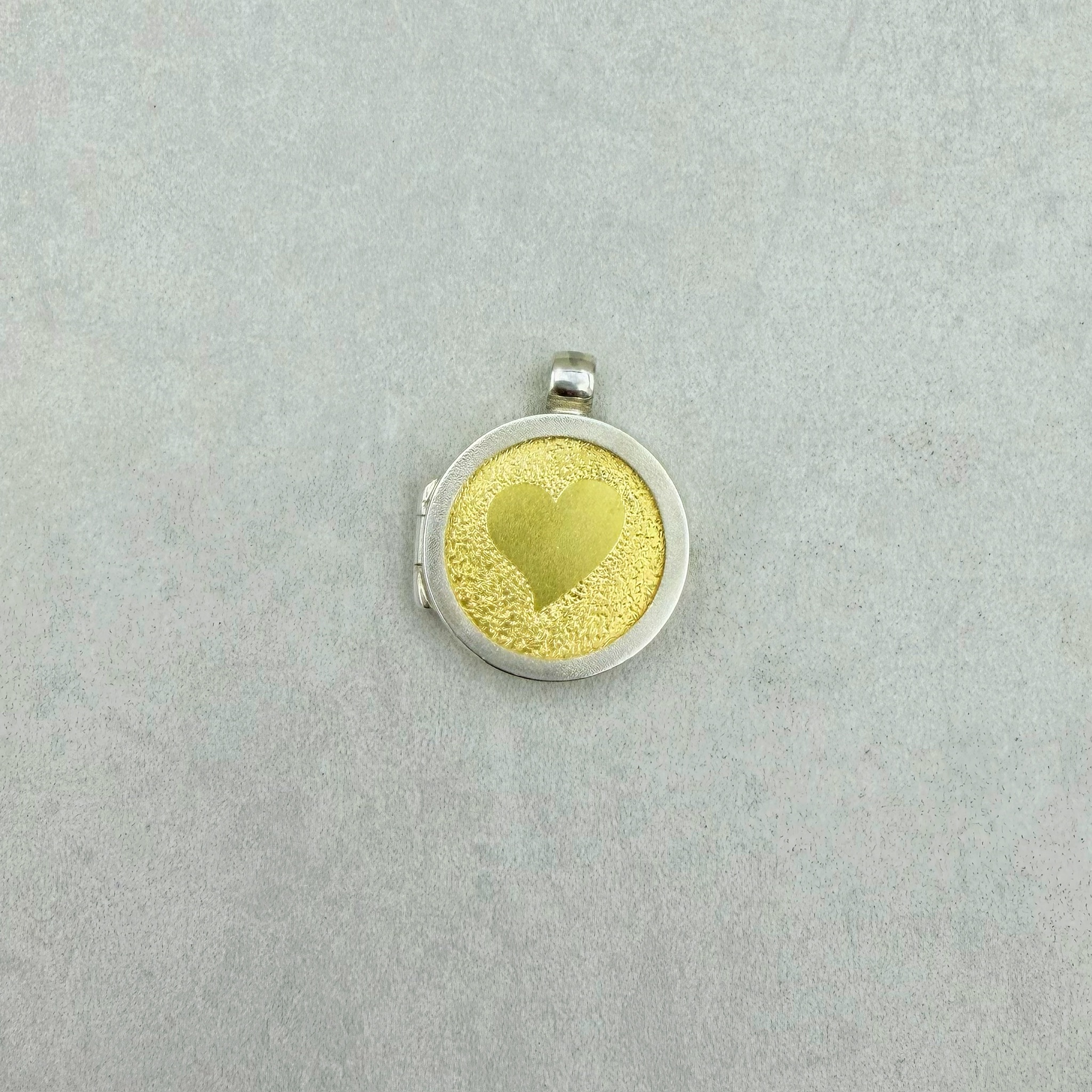 Die Vorderseite besteht aus 900/-Gold und ist mit viel Liebe von Hand mit einem Herz graviert.