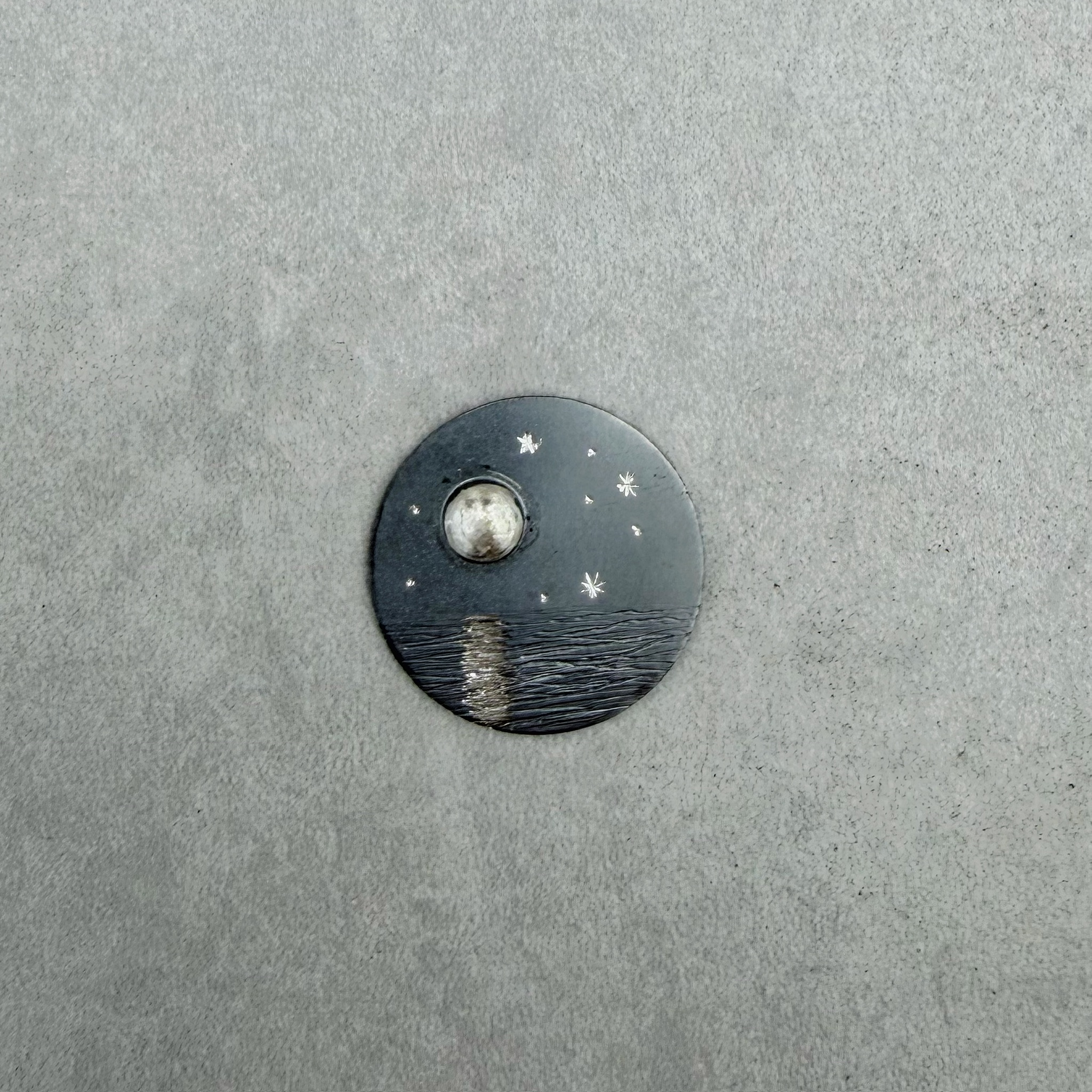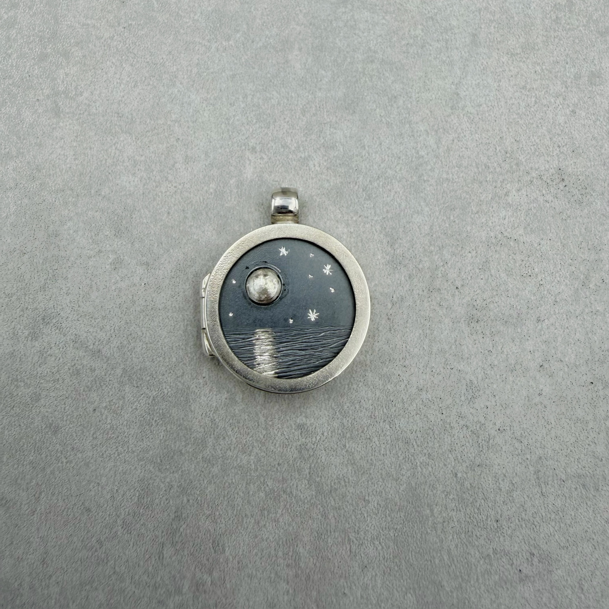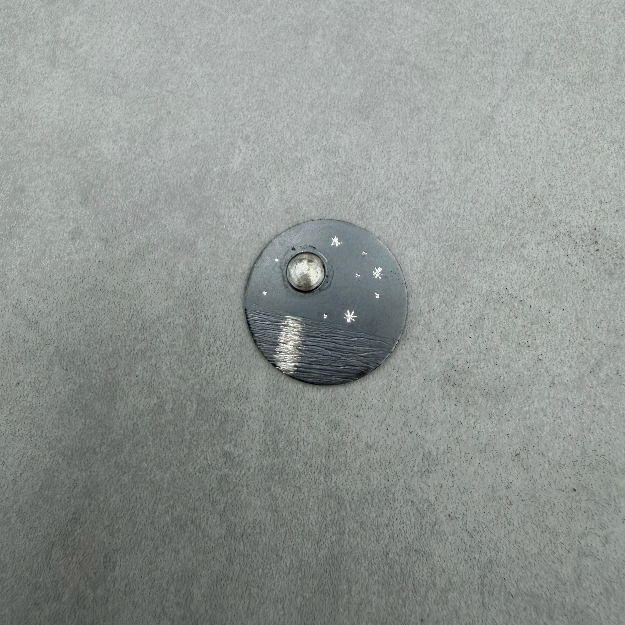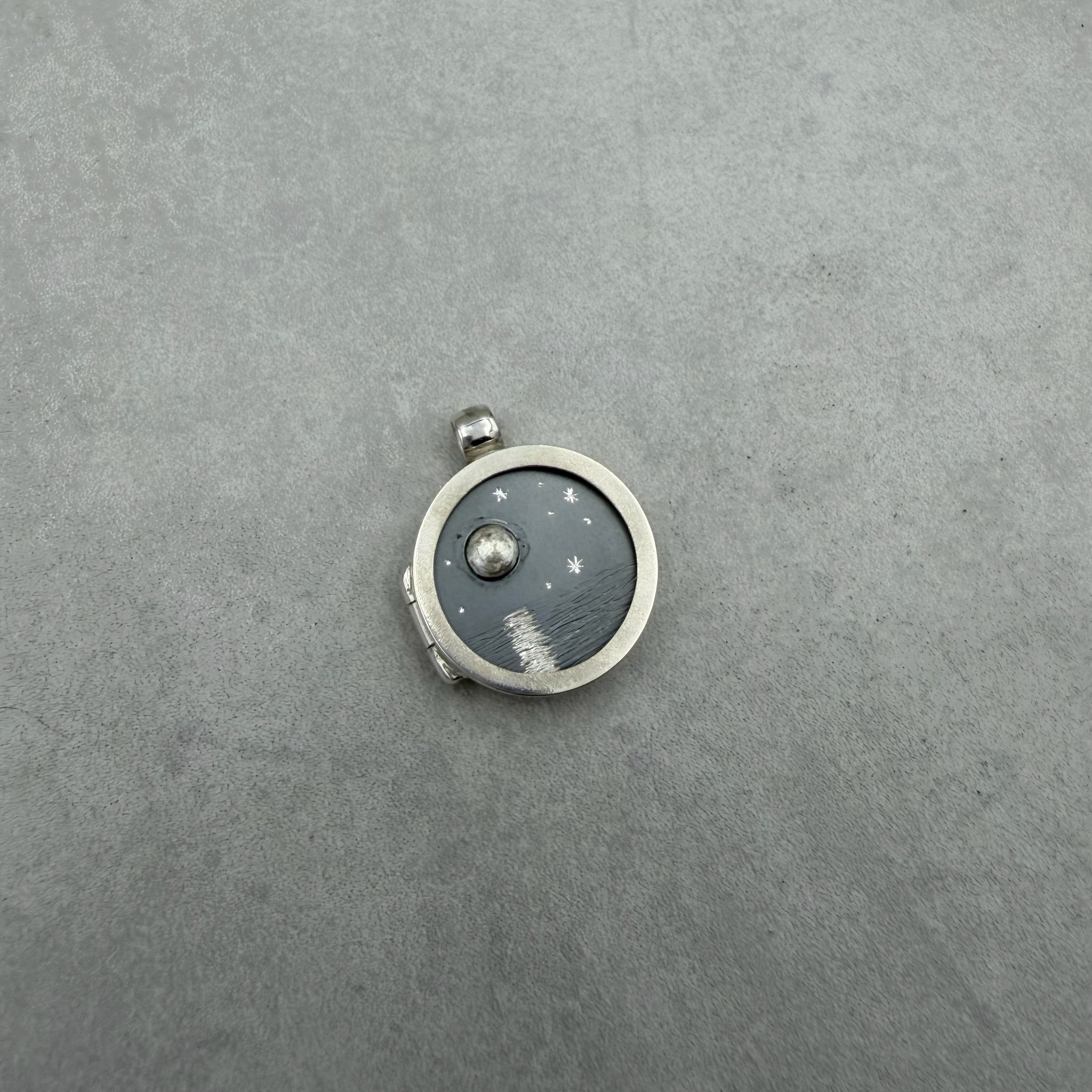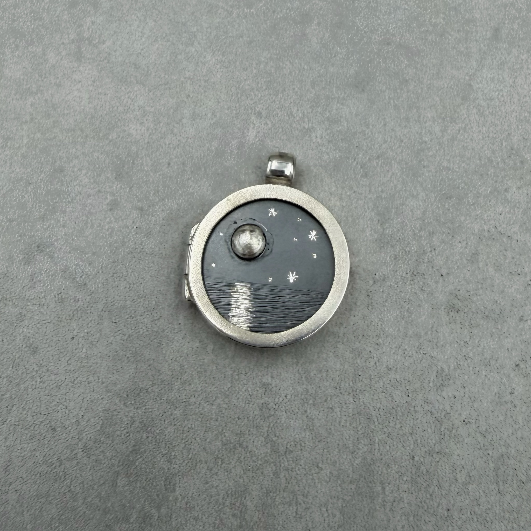 Auswechselbarer Deckel-Einleger, für unser Day-to-Day Medaillon aus 925/-Silber, teilweise oxidiert.