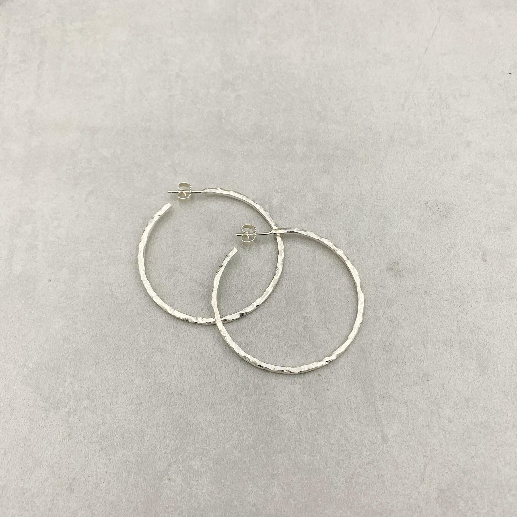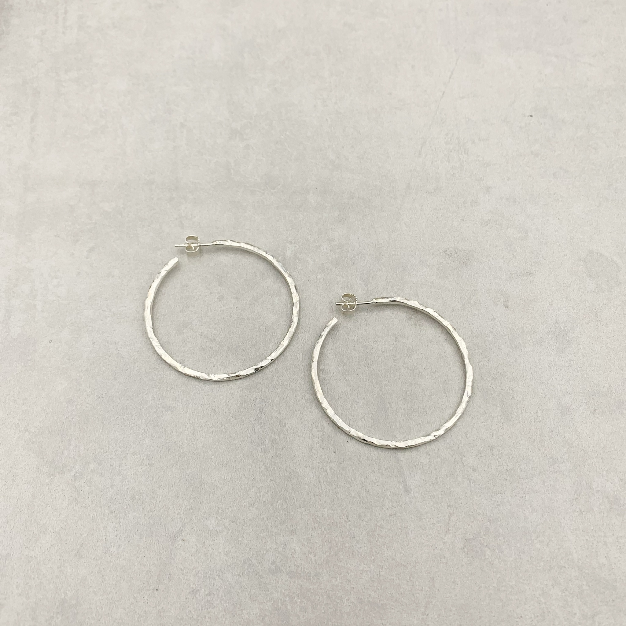 Handgeschmiedete Creolen mit strukturierter Oberfläche.