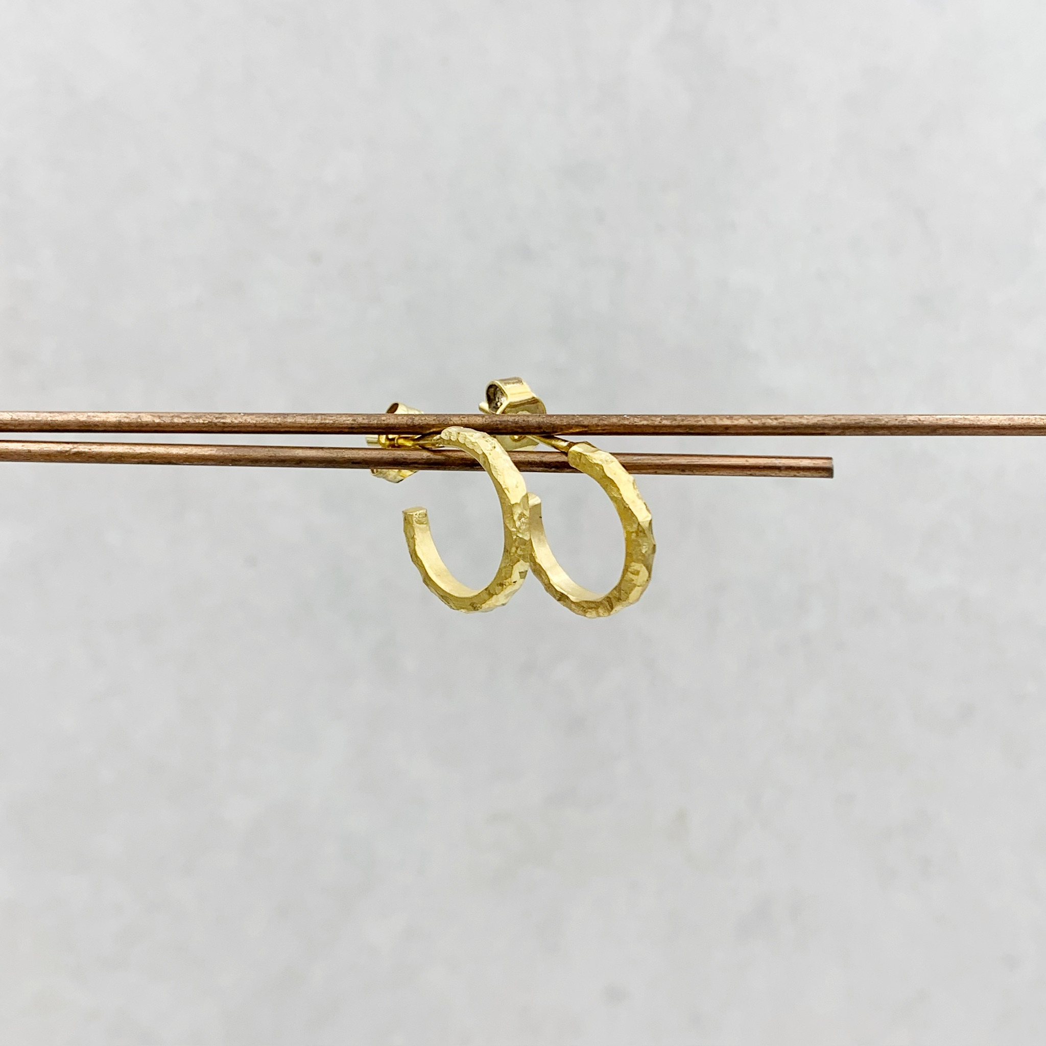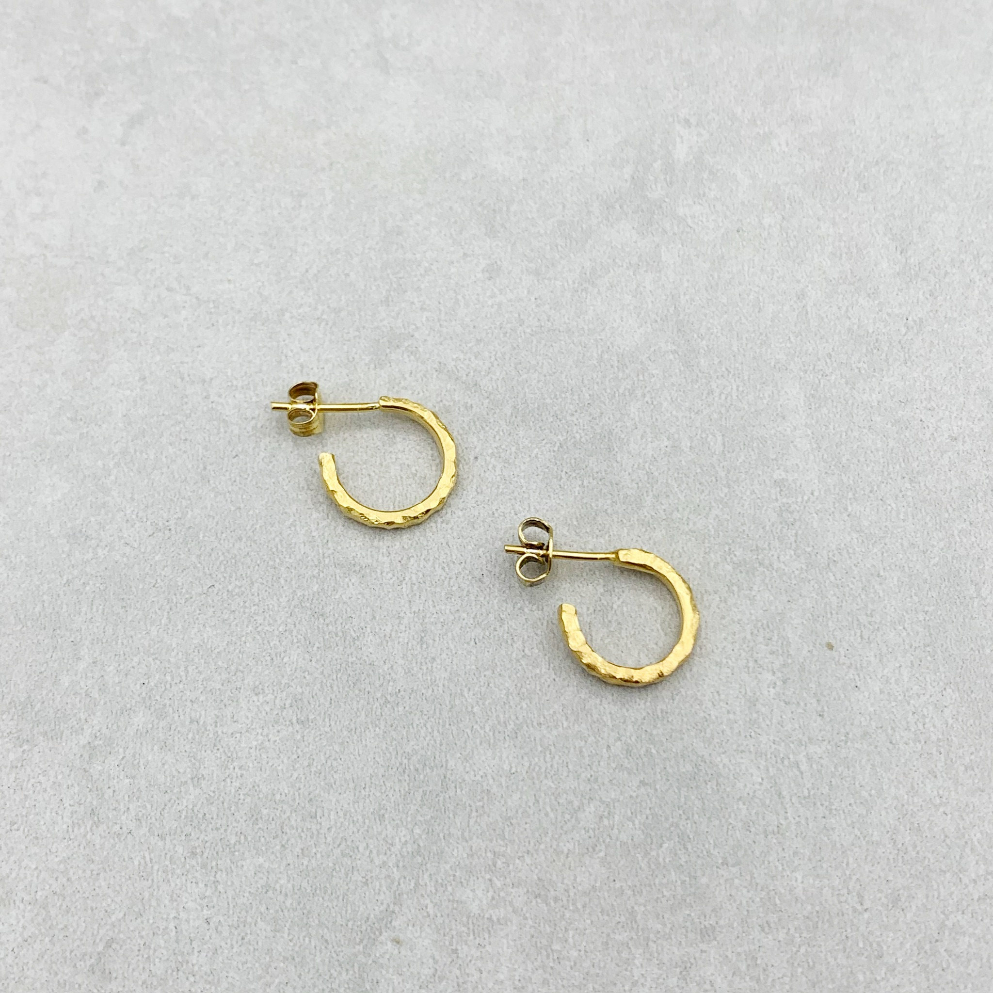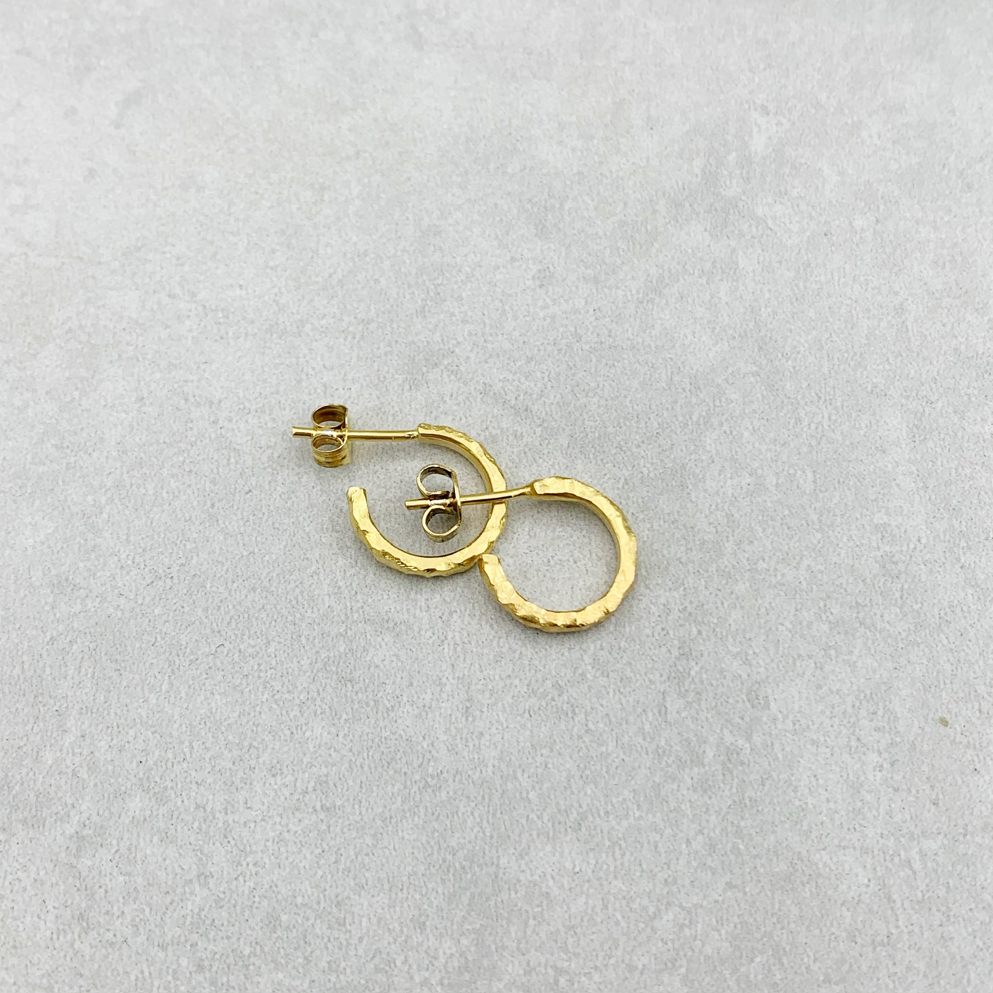 Handgeschmiedete Mini Creolen mit strukturierter Oberfläche.